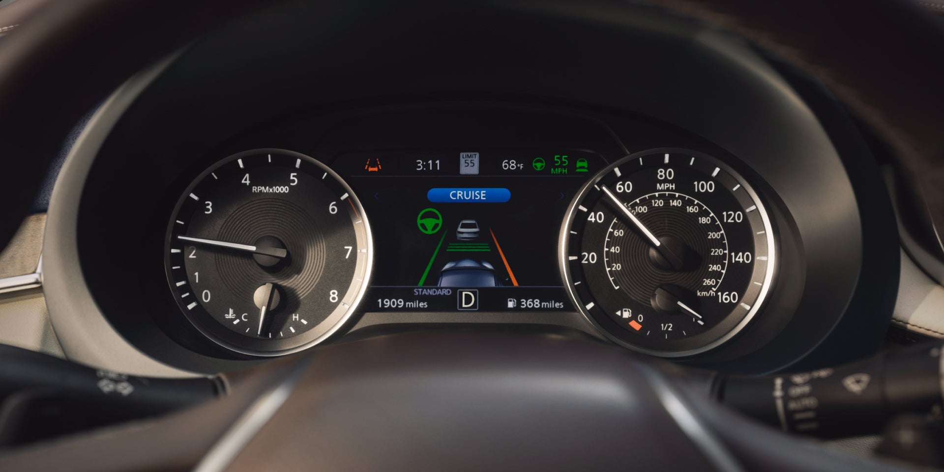 ProPILOT Assist cannot prevent collisions. It is the driver’s responsibility to be in control of the vehicle at all times. Always monitor traffic conditions and keep both hands on the steering wheel. System operates only when lane markings are detected. Does not function in all weather, traffic and road conditions. System has limited control capability and the driver may need to steer, brake or accelerate at any time to maintain safety. See Owner’s Manual for safety information.