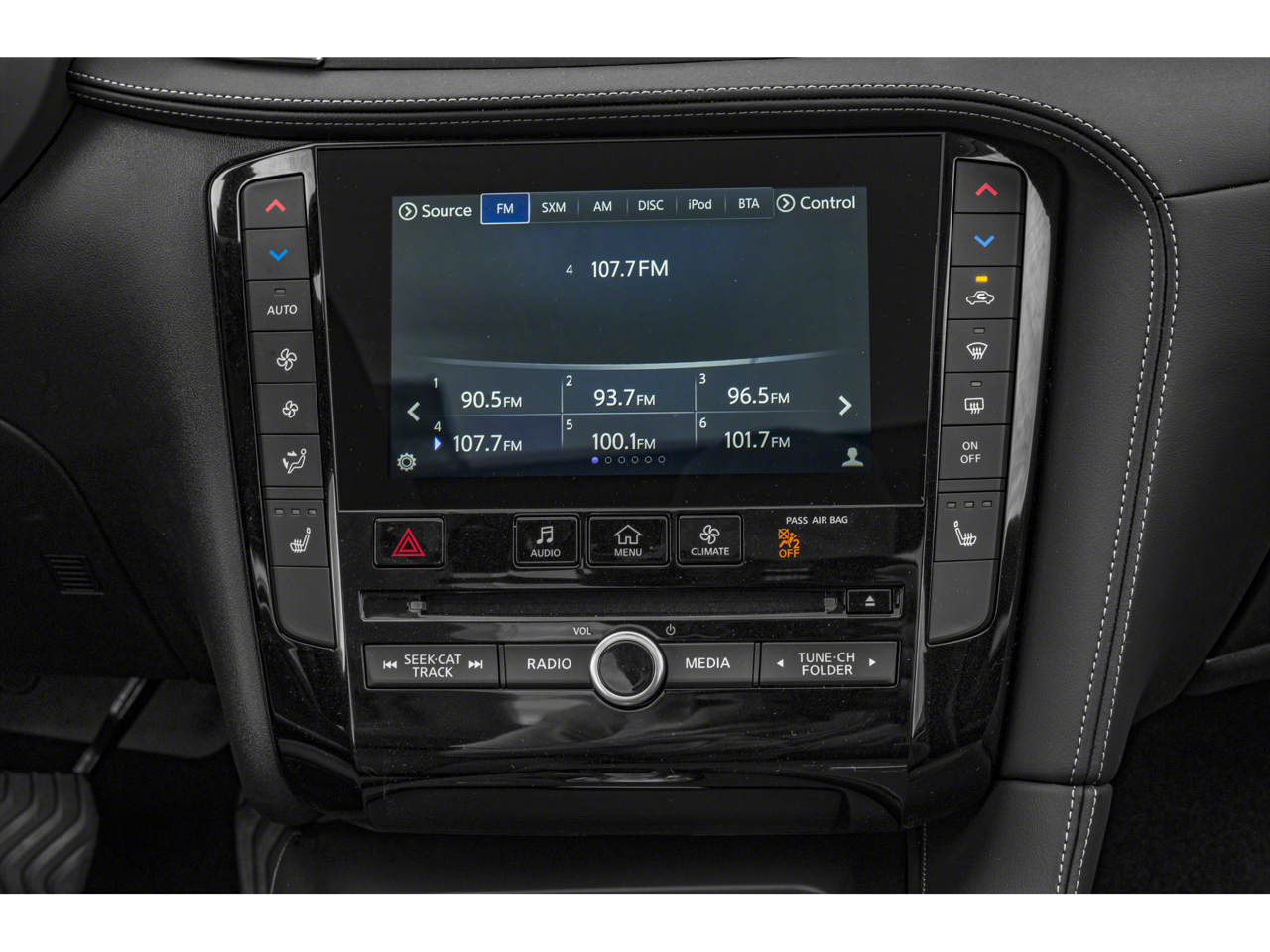 - Radio: Bose Performance Series Audio System -inc: 16 speakers, metallic speaker grilles on tweeters, INFINITI InTouch, INFINITI InTouch services, INFINITI InTouch dual display system w/upper 8" and lower 7" HD touch screens, wireless Apple CarPlay, Android Auto, SiriusXM radio w/advanced audio features and 90-day complimentary trial, INFINITI voice recognition, Siri Eyes Free, Wi-Fi hotspot, active noise cancellation, navigation w/3D building graphics, 5 year complimentary access to premium traffic and MapCare, SiriusXM Traffic w/3 month complimentary trial access to real-time traffic information and SiriusXM Travel Link w/3 month complimentary trial access to weather, fuel prices, stock prices, sport scores, movie listings and parking